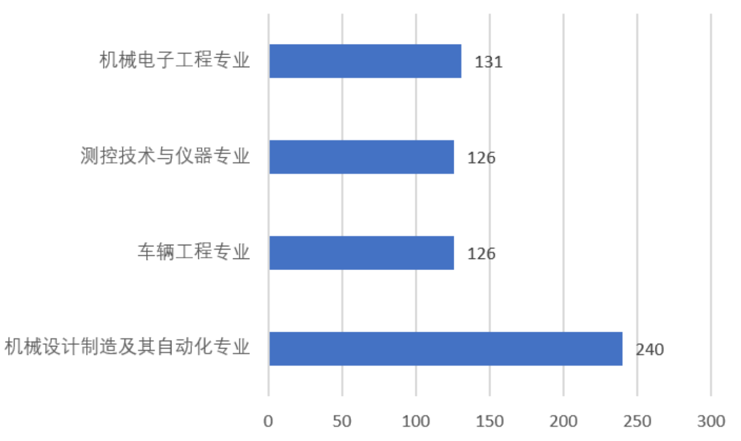 爱游戏ayx体育2021届本科毕业生共4个专业,分别是机械设计制造及其自动化、车辆工程、测控技术与仪器、机械电子工程。其中机械设计制造及其自动化专业240,车辆工程专业126人,测控技术与仪器专业126人,机械电子工程专业131人。分学历层级专业分布图如图4所示。
