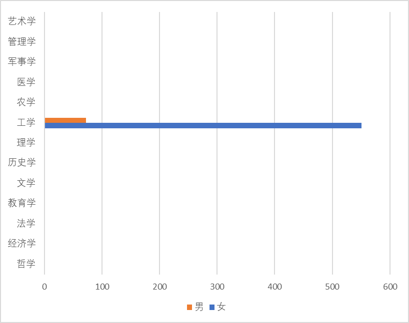 爱游戏ayx体育2021届毕业生全部为工科。男生551人,占88.44%;女生72人,占11.56%。毕业生分学科门类(专业大类)、性别分布图如图8所示。