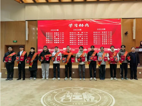 河北省三好学生、校十佳大学生、测控222班刘柏羽同学分享了其在学业与体育赛事中实现双向突破的成长历程,展现了新时代青年的拼搏风采;测控221班张舜同学以学年绩点提升0.92的逆袭经历,讲述了突破自我、坚持奋斗的蜕变故事,在场学生深受鼓舞。