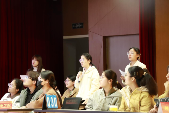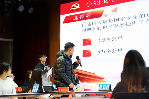 决赛环节,来自人文与法律学院、人工智能与数据科学学院、土木工程与交通学院、经济管理学院、生命科学与健康工程学院、理学院、化工学院、爱游戏ayx体育的8组选手,通过必答题、抢答题、风险题、一题决胜等环节进行激烈角逐,现场300余名观众积极参与,气氛热烈。