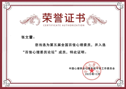 图7 张文蕾同学获“全国百佳心理委员”称号