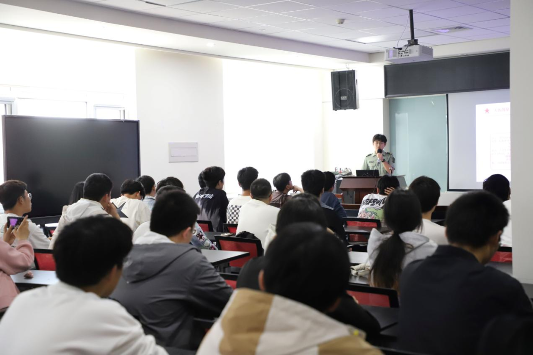 随后,刘一涵同学详细解读了学生普遍关注的大学生应征入伍后个人发展问题、各项经济优抚政策以及退役后享受的升学、就业等优抚政策,使同学们对应征入伍条件和政策等方面有了更深入的了解。