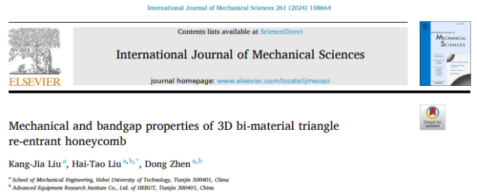 科研速递丨三维双材料三角形内凹蜂窝的力学和带隙特性