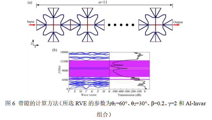 (3) 对于3D-BTRH,CTE主要由双材料三角形调控,PR主要由内凹结构调控。因此,为了达到目标CTE和PR,可以分别调整两者的几何参数。这可以通过优化结构设计来实现,包括材料和几何参数的选择,以达到所需的热性能和机械性能。内凹星型蜂窝的NPR效应强,设计简单,制造方便,声学性能好,是一种有效的减振降噪解决方案。本研究为同时调控CTE、PR和带隙的三维超材料提供了一种设计思路,为更好地服务于工程实践提供了可能。