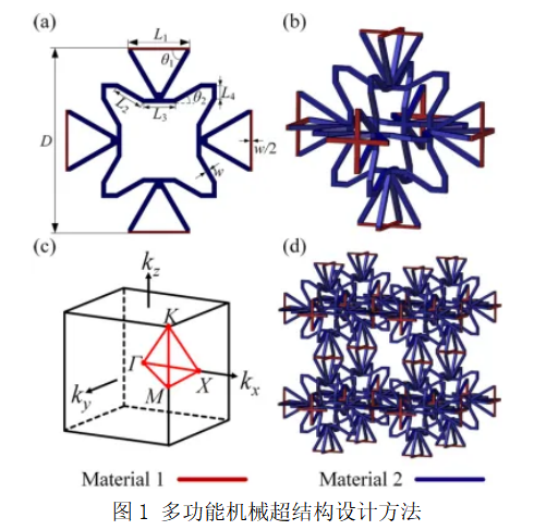 基于此背景,kaiyun体育网页登录入口刘海涛教授课题组设计了一种集可调热膨胀系数(CTE)、泊松比(PR)和带隙于一体的多功能机械超结构,提出了一种可调PR的三维双材料三角形内凹蜂窝(3D-BTRH)。通过建立理论模型,揭示了3D-BTRH调控CTE和PR的内在机理,结合有限元仿真技术及宏观试验进而验证了PR和杨氏模量理论分析的准确性。基于布朗格周期性边界条件利用布洛赫定理,采用有限元方法计算了能带结构和总有效带隙宽度。通过对传输特性曲线的计算,验证了能带结构计算的准确性。参数分析表明,3D-BTRH可以在三个坐标轴方向上实现CTE和PR的同时调控,并且具有较大的总有效带隙宽度。本研究为同时调控CTE、PR和带隙三维超结构提供了设计思路,为更好的应用于工程实践提供了参考。相关工作以“Mechanical and bandgap properties of 3D bi-material triangle re-entrant honeycomb”发表于机械工程领域顶级期刊《International Journal of Mechanical Sciences》。