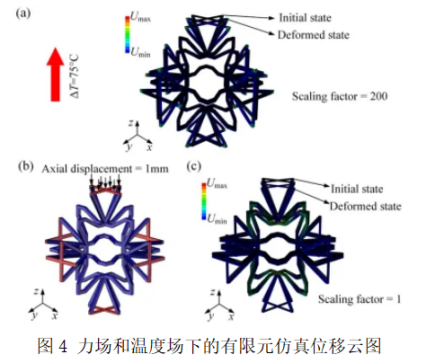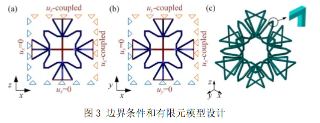 如图1-4,通过体心正交对称将2D-BTRH变换为3D-BTRH,以实现三个坐标轴方向的力学性能的各向同性和提高实际应用性。之后建立了温度场和力场的力学分析模型,利用有限元方法分析了3D-BTRH在力场和温度场下的变形情况。