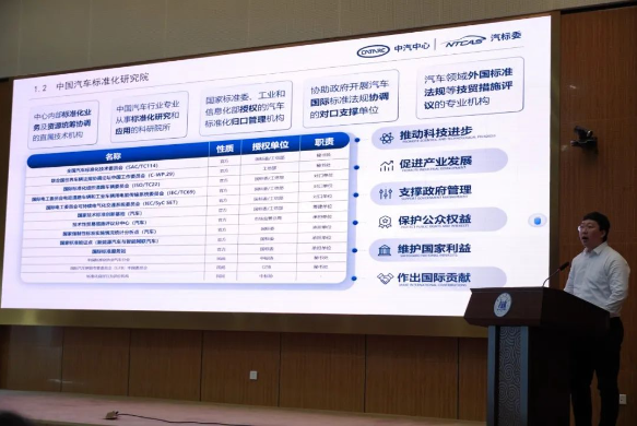 接着,中汽研标准院的4位技术专家以《汽车标准化基础及应用》、《汽车可靠性标准工作介绍》、《以标准引领新能源汽车产业高质量发展》、《智能网联汽车标准工作介绍》为题作专题报告,带领学生深度学习了汽车行业标准化工作的前沿知识。