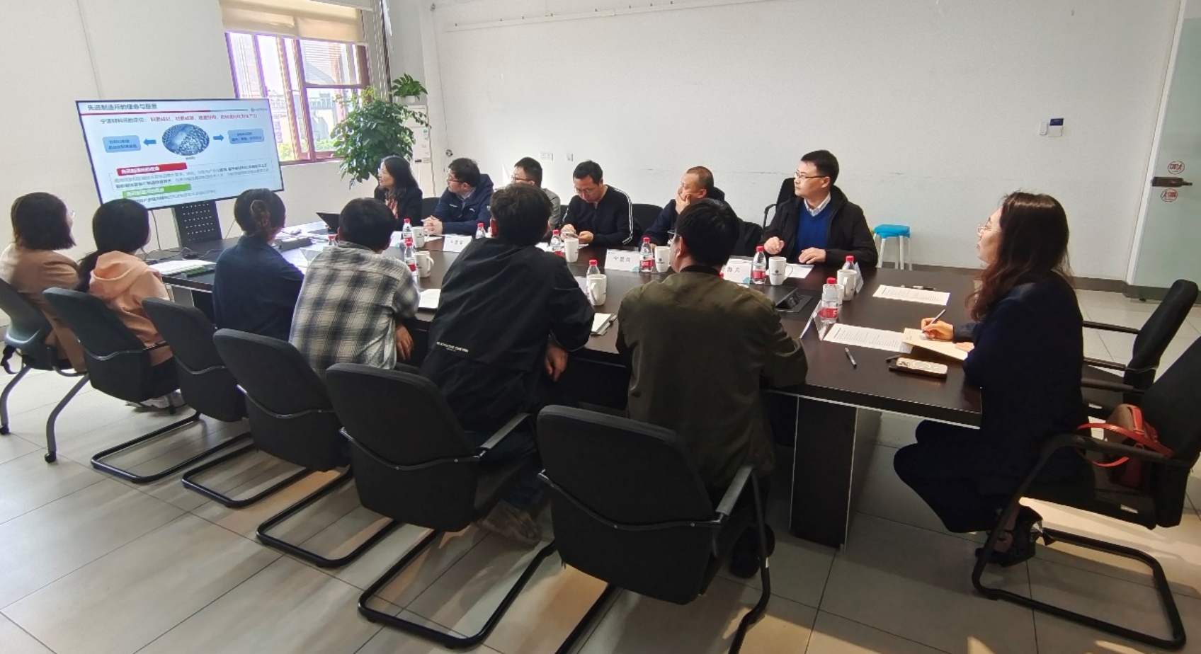 祝颖丹研究员对各位老师的到来表示热烈欢迎,并简要介绍了宁波材料所及先进制造所概况及研究成果。赵丽滨院长对中国科学院宁波材料所热情接待表示感谢,并介绍了该项目的基本情况,强调项目不仅要在基础研究取得突破还要面向应用需求,围绕提高非平面连接承载和传载能力的三角区填充材料的抗损伤性能及其与包覆层之间的力学相容性等关键问题,组织好协同创新,推动关键技术实现重大突破。