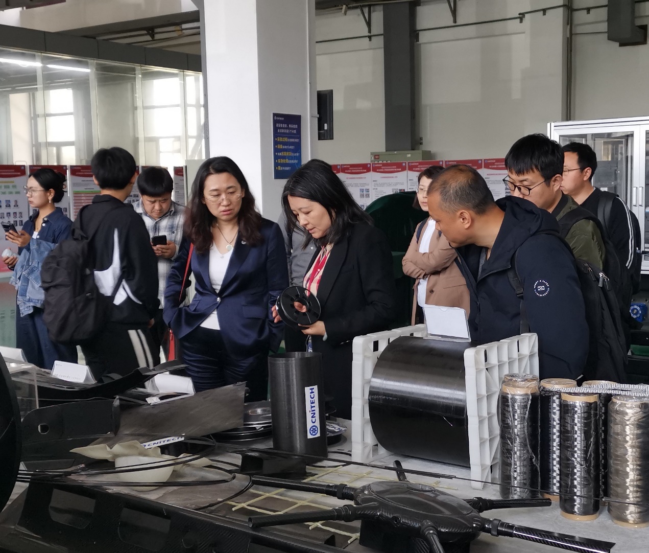 在祝颖丹研究员的陪同下,赵丽滨院长一行参观了中国科学院宁波材料所先进制造技术所工程中心,深入了解了先进制造技术所在高性能复合材料、电机、机器人等领域的最新技术研发成果、技术优势和落地案例。赵丽滨院长对先进制造技术所在碳纤维树脂基复合材料技术研发和应用方面所取得的成就给予了高度评价,并表示河北工业大学非常期待与宁波材料所进一步加强合作,共同推动航空航天新材料领域的协调创新与研究生联合培养。