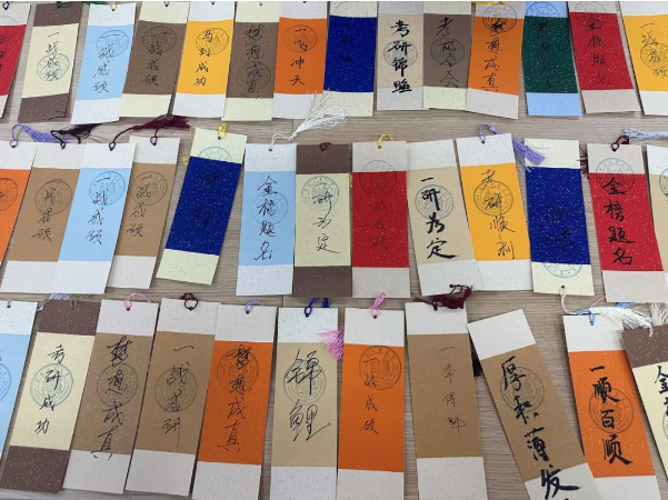 12月10日,老师们为同学们送上亲手书写的书签480张。每一张书签都蕴含着温暖与鼓励,温暖的文字如同点点星光,照亮考研学子前行的道路,给予他们心灵上的慰藉与支持。