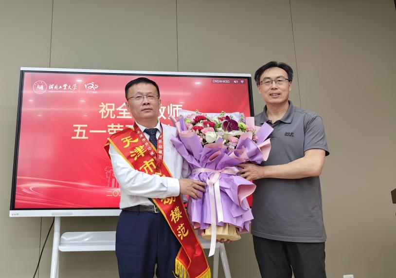 贺立军与天津市五一劳动奖章获得者周围副教授合影